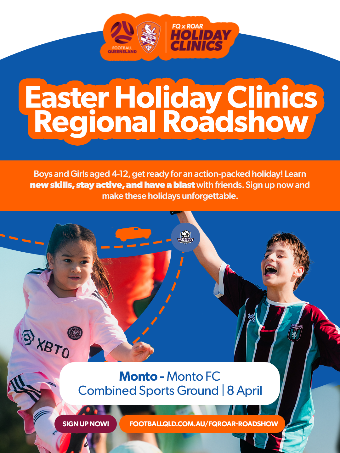 Football Queensland is taking our Easter Holiday Clinics Roadshow across regional Queensland these school holidays! This April, we’re stopping at 16 clubs statewide, delivering high‑energy, fun‑filled football clinics designed to keep kids active, smiling and loving the game.