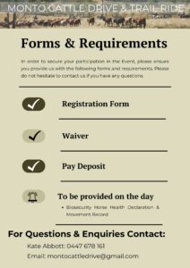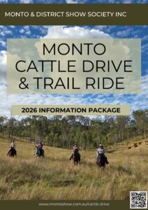The Monto Cattle Drive and Trail Ride is hosted by a dedicated sub-committee of the Monto & District Show Society Inc, a not-for-profit incorporated association established in 1929 to encourage and promote agriculture and primary industries within the District.
