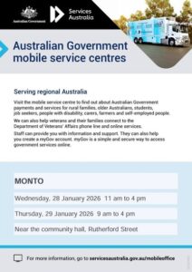 Services Australia Mobile Service Centres are visiting the North Burnett to provide face-to-face Medicare and Centrelink support in our local towns.