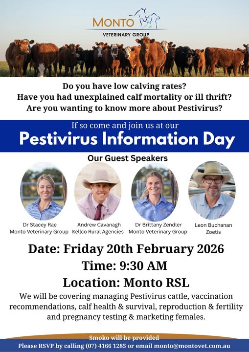 FREE Pestivirus Information Day Do you have low calving rates? Have you had unexplained calf mortality or ill thrift? Are you wanting to know more about Pestivirus?If so, then come and join us… Read More »Pestivirus Information Day