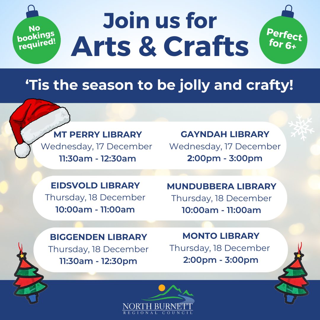 Get Creative at Your Local Library! All North Burnett libraries are hosting arts and craft sessions to help keep the kids entertained these school holidays.Check out the times below and unleash… Read More »Arts & Crafts at the Library