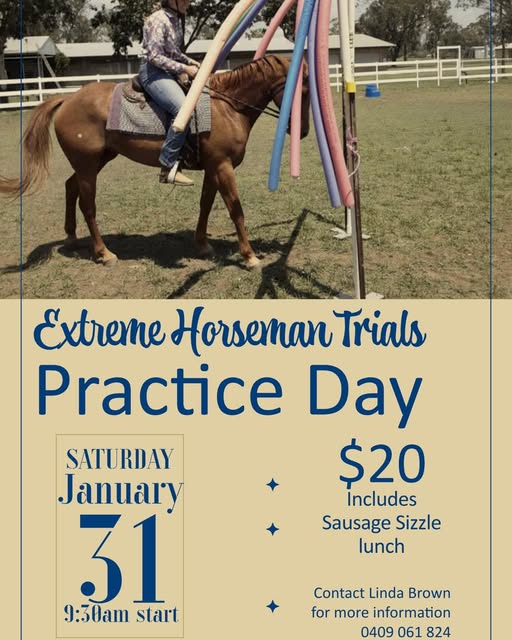 Come and try your skills at the Extreme Horseman Trials. We host a competition at the Monto Show April 25-26 2026 and to help you and your horse prepare we are running practice days.Day starts at 9:30am and a sausage sizzle lunch is included. Held at the Monto Showgrounds.Complete your Horse Health Declaration and waivers… Read More »Extreme Horseman Trials Practice Day |